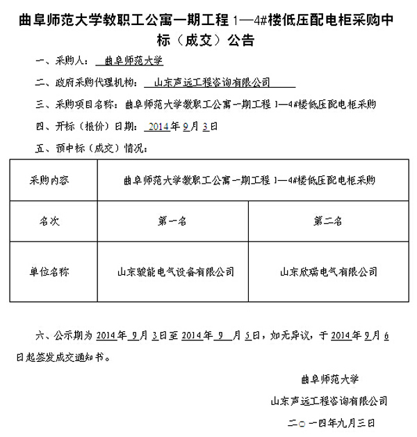 球探·体育,球探(中国)教职工公寓一期工程1--4#楼低压配电柜采购中标(成交)公告