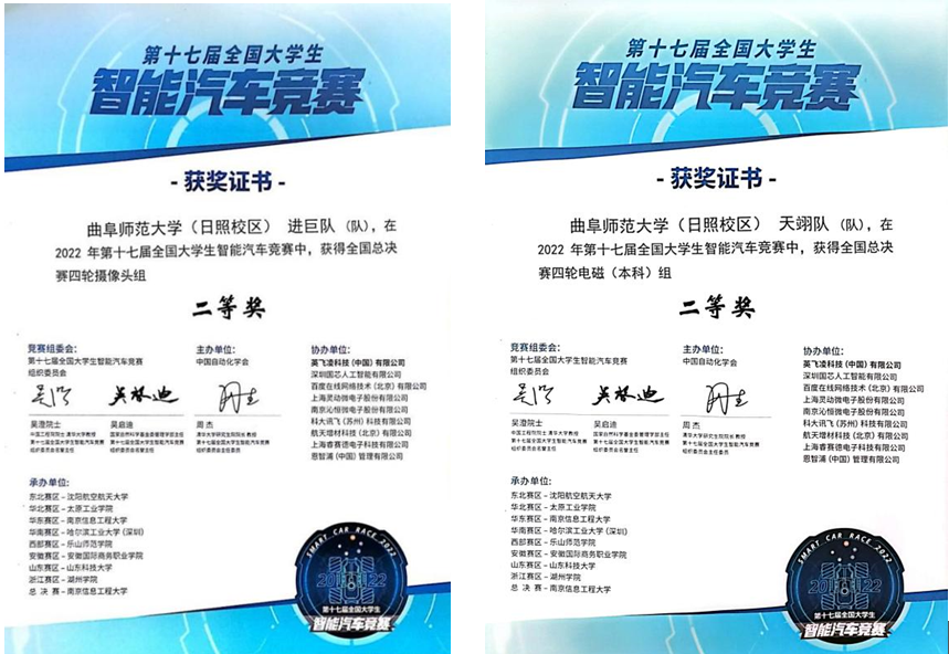 曲阜师大新闻中心讯(通讯员:于运清)近日,第十七届全国大学生智能汽车竞赛决赛成果公布,球探·体育,球探(中国)计算机学院学子在此次比赛中斩获佳绩。在李光顺老师和吴俊华老师的指导下,由贾宝玺、范树玉、孟凯同学组成的进巨队,彭清元、邹如萍、周晓萌同学组成的天翊队入围全国总决赛,并分别荣获摄像头四轮组和电磁四轮组国家级二等奖。