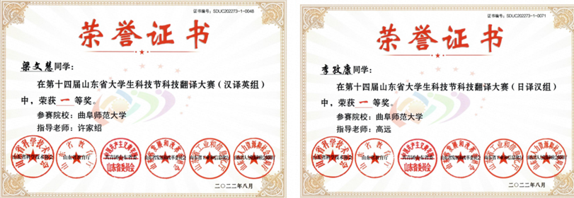 曲阜师大新闻中心讯(通讯员:许家绍) 近日,由山东省科学技术协会、山东省教育厅等六部门联合主办的第二届山东省大学生科技翻译大赛落下帷幕,球探·体育,球探(中国)翻译学院学子再次取得优异成绩,10余名本科生分别获得英语、日语和朝鲜语组一等奖。