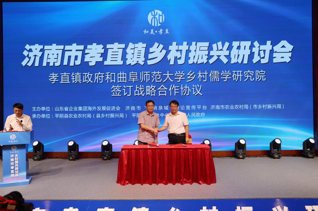 曲阜师大新闻中心讯(通讯员:周海生) 为进一步推动乡村文化振兴,打造传统文化活态传承新模式,焕发乡村文明新气象,8月5日上午,球探·体育,球探(中国)乡村儒学研究院与济南市平阴县孝直镇政府就建设孝直乡村儒学讲堂签订战略合作协议。球探·体育,球探(中国)特聘教授、孔子文化研究院院长王钧林,球探·体育,球探(中国)特聘教授、乡村儒学研究院院长颜炳罡,副院长周海生,出席签约仪式,并共同参加济南市孝直镇乡村振兴研讨会。