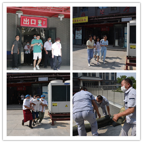 演练以连日大雨导致学校研究生公寓下沉广场餐厅发生洪水倒灌险情,严重威胁师生生命和财产安全为背景,以保障学生和餐厅工作人员安全撤离、排放积水、恢复供电为关键点,分为紧急疏散、筑坝抢险、电力抢修、现场清理四个环节。保卫处处长颜卫东宣布演练开始,学生和餐厅工作人员在救援人员的组织引导下快速有序撤离至安全区,并做好人员的清点与汇报,伤病员送至临时医疗点。抢险组工作人员服从指挥、分工协作,清排积水、搬运沙袋、堆筑堤坝。同时进行电力维修、恢复供电,清理暴风雨期间倾倒的树木及断裂枝杆,排除安全隐患。