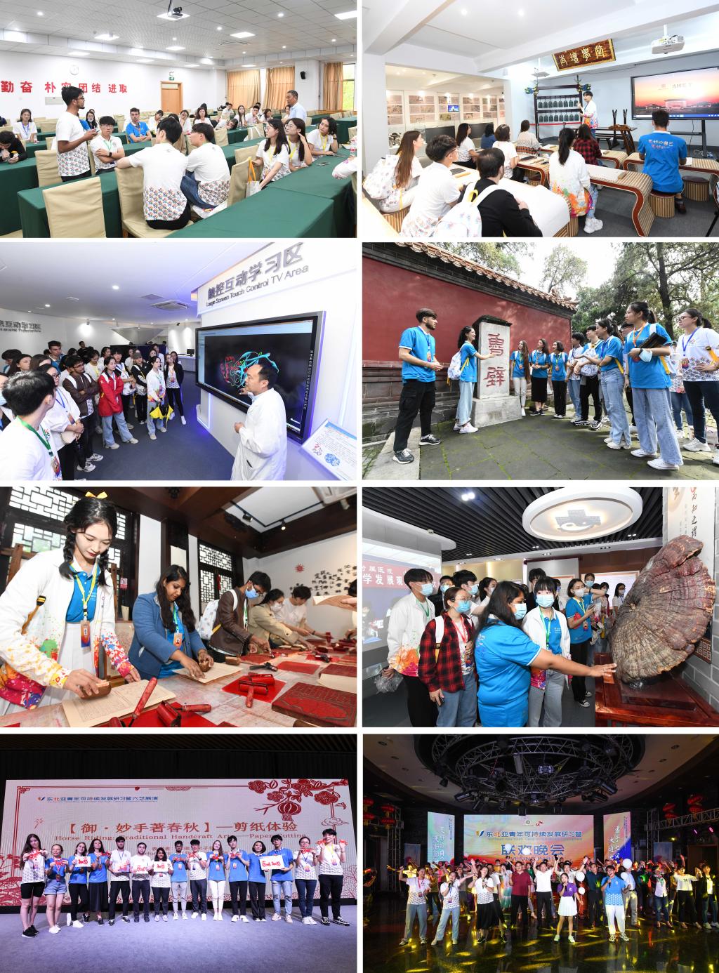 闭营式上,播放了回顾研习营走访圣城与泉城各地的视频短片。为期四天的交流中,营员们在孔庙孔府感受中华文明源头的千年底蕴;在太阳纸业、尼山鹿鸣见证现代科技手段对于绿色低碳、永续发展的贡献;在孔子博物馆、中国教师博物馆,读懂博物馆里的中国,共同发出绿色发展青年倡议“养君子之风 践大道之行”;在生物标本实验室聆听湿地专家讲授淡水贝类人工繁育对生态环境的贡献,通过虚拟仿真实验、3D全息投影等技术直观了解微山湖物种保护的现状;在汉字记忆空间缝制宋代四目线装书和传拓瓦当的工艺;在省中医院验证中医的疗效……营员们不仅加深了对绿色中国的了解,还学习了书本中学不到的知识,收获了亲如家人的浓浓友情。一个个精彩瞬间,一段段难忘时刻,令人留恋不舍。