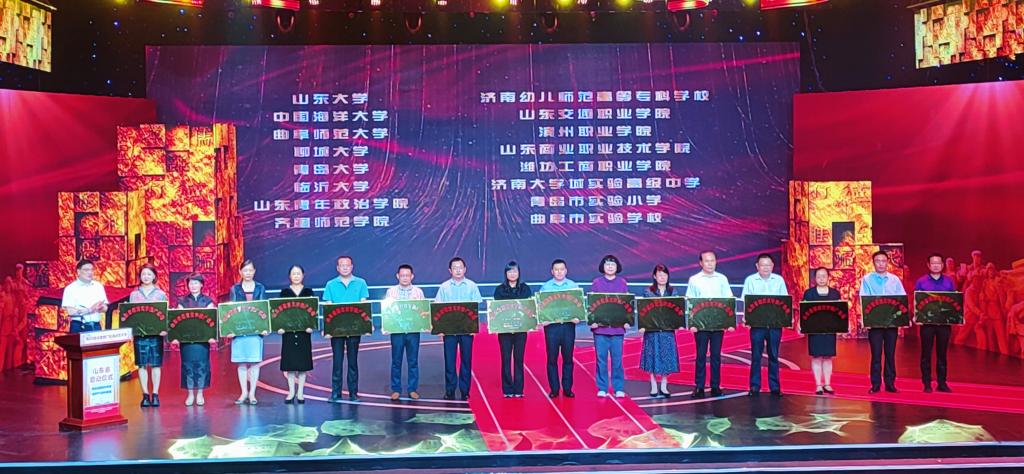 启动仪式上,学生代表宣读《山东省第24届推广普通话宣传周倡议书》,进行了中华经典诵读节目表演,并通过视频连线济南市市中区望岳路小学、鲁东大学国家语言文字推广基地、青岛市城阳区城阳街道东田社区等基层活动现场,多角度展示了全省推普工作的丰硕成果。最后,荆戈为首批山东省语言文字推广基地授牌,共有16家单位获得山东省语言文字推广基地称号。
