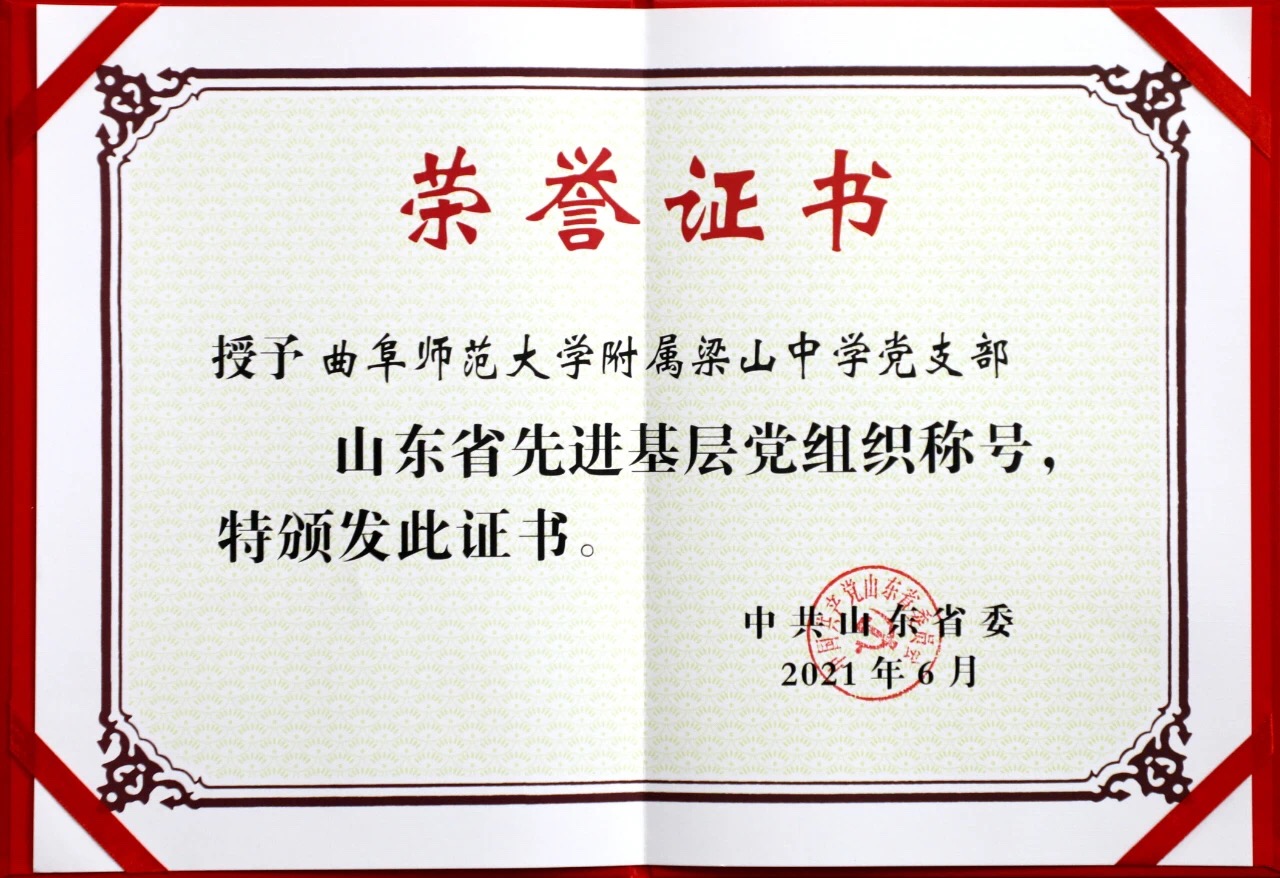 曲阜师大新闻中心讯 日前,中共山东省委印发《中共山东省委关于表彰山东省优秀共产党员、优秀党务工作者和先进基层党组织的决定》,球探·体育,球探(中国)附属梁山中学党支部荣获“山东省先进基层党组织”称号。