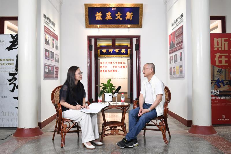 参观过程中,孙祥广谈到了中国教师博物馆与文学院拟共同开展教师影像研究的有关设想,刘醒龙表示教师影像蕴涵着重要的历史和教育价值,同样是宝贵的教育遗产,对此予以大力支持。他欣然接受了文学院刘聪教授的专访。关于两部知名教师题材作品《凤凰琴》《天行者》的创作初衷,刘醒龙说:“《凤凰琴》是我对生活的感动,《天行者》是我对历史的沉思。中国的改革开放之所以能够迅速发展,其中也包含着乡村教师为振兴乡村教育作出的重要贡献。现在世界有的国家变革如此艰难,因为社会普遍受教育程度偏低,这就阻碍了文明进程。而一段时期中,中国的乡村教师以他们最素朴的一种力量,形成了改变当时教育现状乃至影响社会进步的一种可能,所以我在长篇小说《天行者》的扉页上,写了一句话‘献给在二十世纪后半叶中国大地上默默苦行的民间英雄’ 。”