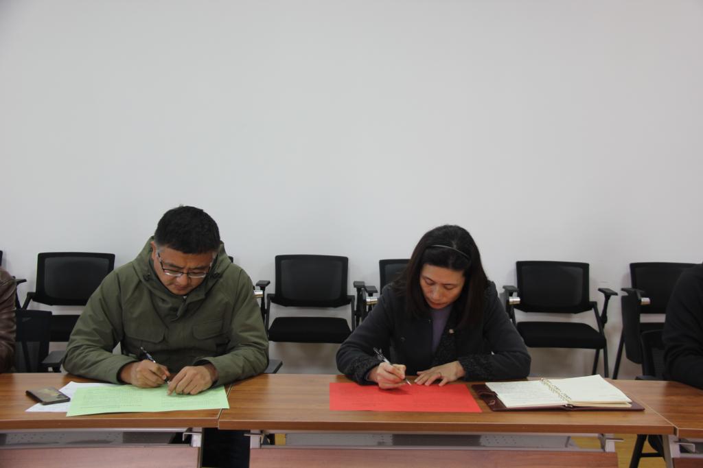 副院长宋润民对2021年学院安全工作做部署安排。重点指出,学生画室、教师工作室、安全通道、消防设施等处存在问题和解决措施。要求全院教师“总动员”,专业教师和辅导员全员参与,通力协作,共同关注、预防和解决学生的心理安全问题。特别强调,严格落实学校安全工作会议精神,做实安全工作,守好安全底线,为学院各项事业高质量发展提供坚实的安全保障。随后,周彩霞和宋润民代表学院分别签署《综合安全管理责任书》、《治安管理责任书》。