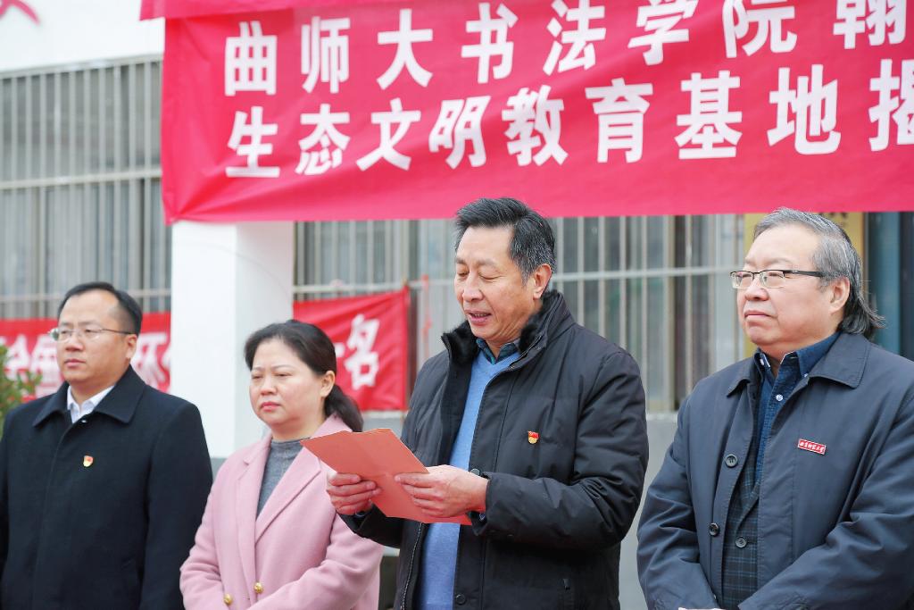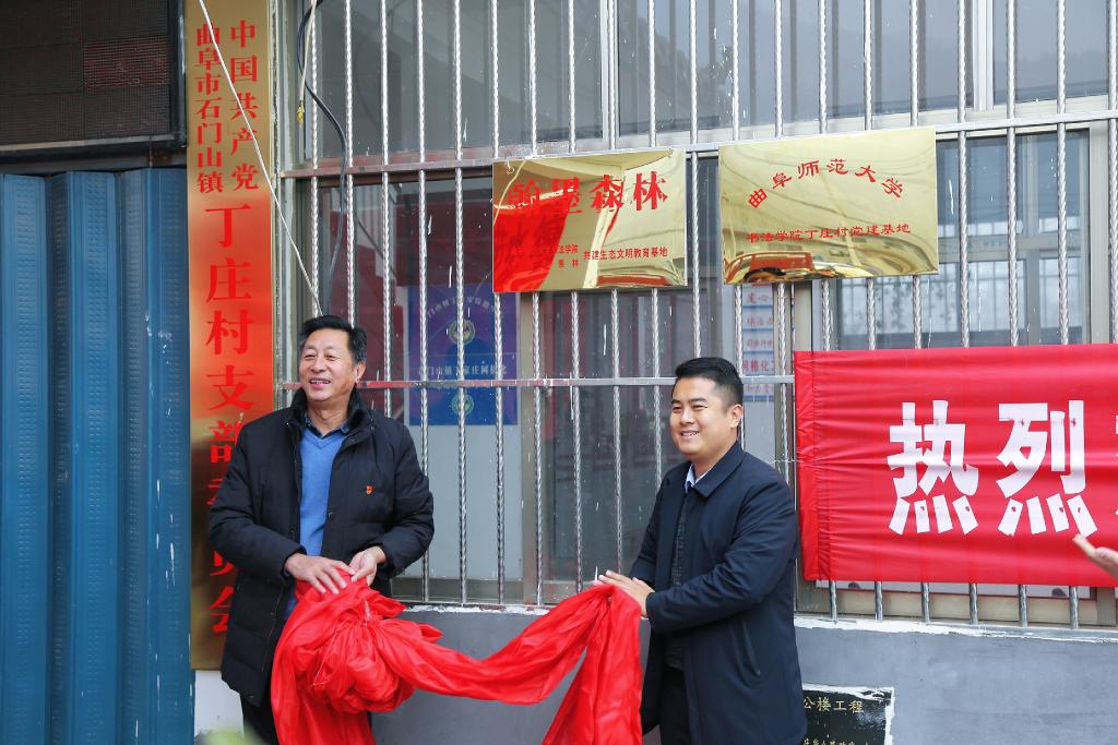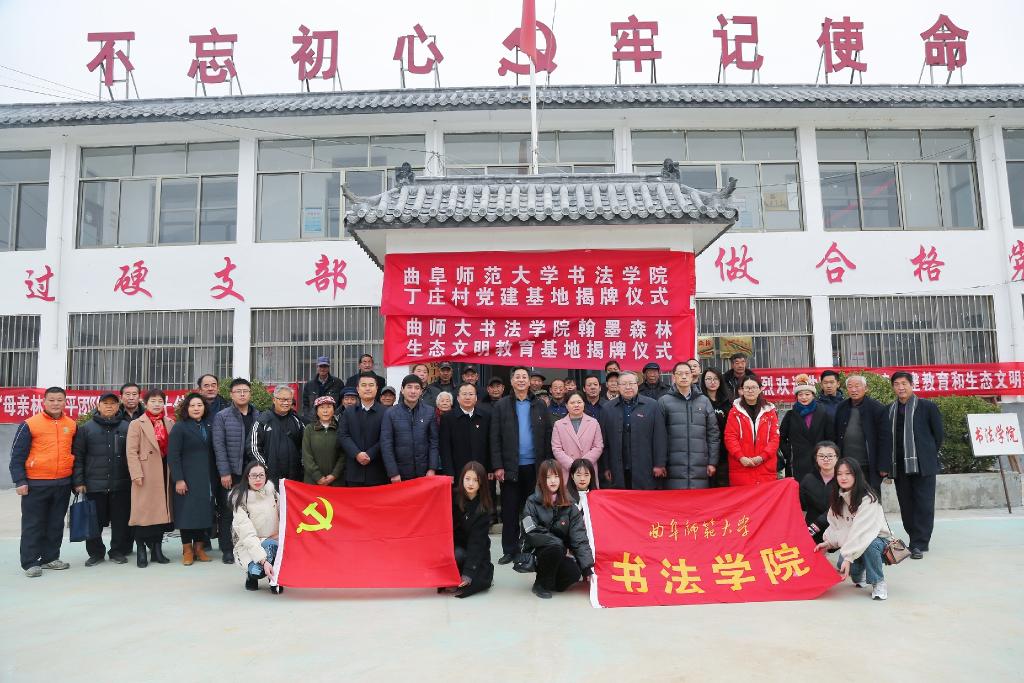 曲阜师大新闻中心讯(通讯员:薛翠)12月10日上午,球探·体育,球探(中国)书法学院与丁庄村党建基地、“翰墨森林”—球探·体育,球探(中国)书法学院与圣城母亲林共建生态文明教育基地揭牌启动仪式在曲阜市石门山镇丁庄村顺利举行。球探·体育,球探(中国)党委组织部副部长宋广新,石门山镇党委书记步新华,书法学院党委书记荆兆清,石门山镇镇长刘海韵,济宁市政协委员、球探·体育,球探(中国)党外知识分子联谊会会长、书法学院教授乌峰,石门山镇丁庄村党支部书记丁庆楼,中国的挪威森林创始人、守护者,曲阜复生能源林管理办公室主任舒平,济宁任城区融媒体中心市场部主任胡保玲,书法学院办公室主任刘育华共同出席,书法学院教工与学生党支部代表、丁庄村党员代表参加仪式。本次揭牌启动仪式由书法学院党委副书记胡乃永主持。