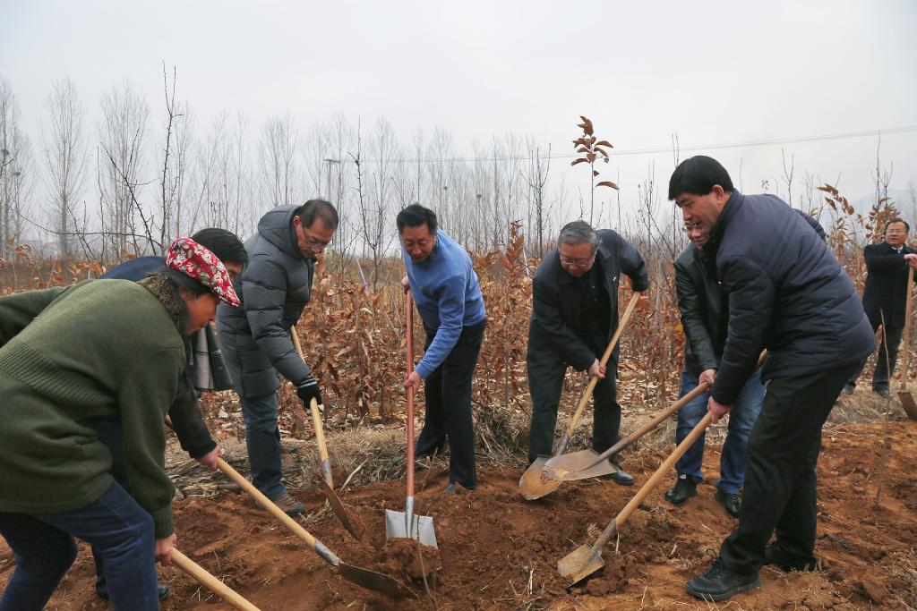 仪式最后,宋广新、步新华、荆兆清、刘海韵、乌峰共同为球探·体育,球探(中国)书法学院与丁庄村党建基地和“翰墨森林”—球探·体育,球探(中国)书法学院、圣城母亲林共建生态文明教育基地揭牌,并一起参加义务植树活动。