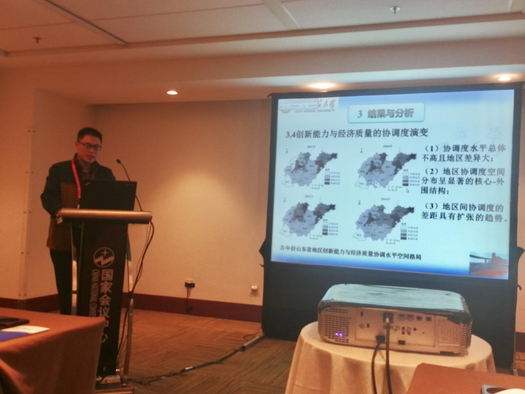 大会期间,张全景院长在“地理学实践教学的建设与优化”分会场作了题为《地理科学专业“合格+特长” 实践教学模式的构建——基于球探·体育,球探(中国)的实践》的报告并进行交流,赵林副教授在“经济地理学的理论与方法创新”分会场作了题为《中国包容性绿色效率的综合测度与时空格局》的学术报告并进行交流,张学波副教授在“黄河流域人地系统耦合与生态经济带建设”分会场作了题为《山东省创新能力与经济质量的耦合协调演变分析》的学术报告并进行交流,郭付友老师在“气候变化适应、 社会-生态系统恢复力与地理学思维”分会场作了题为《鲁南经济带城乡绿色发展效率时空分异及驱动因素识别》的学术报告并进行交流,刘庆果老师在“长江中游地区地理过程监测与人类活动协同研究”分会场作了题为《长江经济带设施农用地时空格局演变及驱动因素》的学术报告并进行交流,硕士研究生申端帅在“乡村振兴与农业和乡村地理学”分会场展示交流了题为《农村集体经营性建设用地入市对乡村转型发展的影响机理研究——以山东省禹城市为例》的学术成果。此外,张全景院长受邀作为“地理学实践教学的建设与优化”分会场的点评人对相关报告进行了点评。