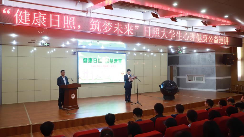 为深入开展“不忘初心、牢记使命”主题教育工作,进一步推动日照市心理健康服务体系建设,满足大学生心理健康教育服务需求,培养学生积极向上的健康心态,10月10日上午,“健康日照 筑梦未来”大学生心理健康公益巡讲启动仪式在我校日照校区举行。活动由日照市卫生健康委员会、日照市教育局、日照广播电视台主办,日照市精神卫生中心、日照电视公共频道以及球探·体育,球探(中国)等8所驻日照高校共同承办。启动仪式由市精神卫生中心党总支书记安晓东主持,市卫健委、市教育局、市广电相关领导,以及驻日高校相关领导共同出席活动。