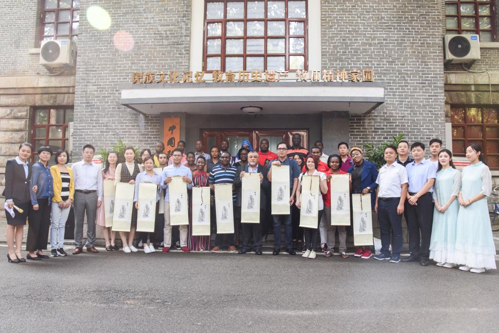 9月26日上午,孔子文化节前夕,第14届“联合国教科文组织孔子教育奖”三位获奖代表及参加颁奖典礼和教育国际研讨会的三十余位代表,来校参观中国教师博物馆。