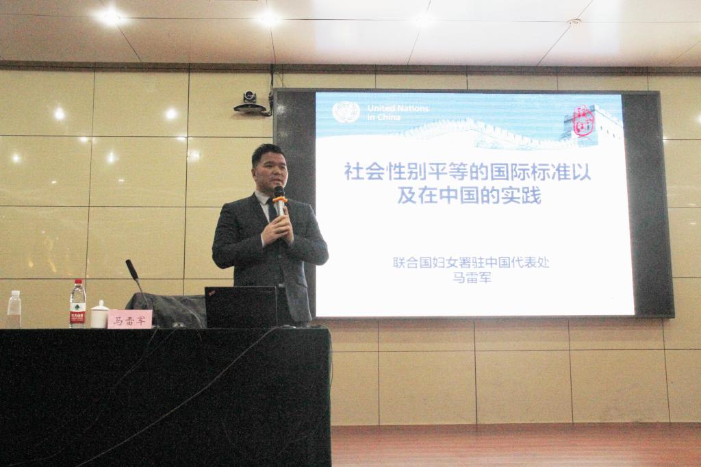 马雷军教授在报告中,以《社会性别平等的国际标准及在中国的实践》为题,结合自己的工作经历,通过身边的案例,从中国的妇女地位、男性与女性的差别、男女平等的国际标准、什么是歧视等六个方面进行了深刻阐述和生动讲解,呼吁高校学生经过自身努力,为男女平等的美好未来做出贡献。整场报告深入浅出,诙谐幽默,赢得在座听众的阵阵掌声。