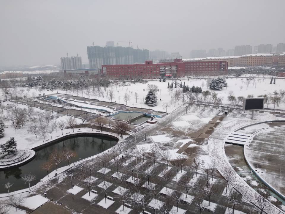 截止上午10:00,校区降雪基本停止,主干道路的积雪基本清理完毕。