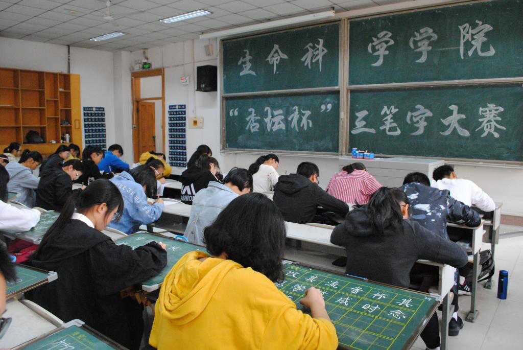 为了进一步树立师范生汉字书写规范意识,提升我校教师教育专业学生职业技能,强化师范生的教育教学综合素质、全面提高就业生的就业竞争力。近日,生命科学学院举办师范生“杏坛杯”钢笔字、毛笔字、粉笔字“三笔字”大赛。党委副书记赵强、张祥沛老师、郭永峰老师担任了本次比赛的评委。2016级、2017级师范生参加了此次比赛。