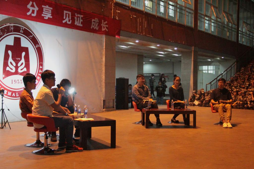 访谈中,来自不同专业的学长们结合自己的生活、学习、工作、实践经历,分别就如何做一名合格的学生干部、如何进行科技创新、如何进行社会实践、如何读书、如何做好大学四年生活的规划五个方面讲述自身的经历,以“分享、见证、成长”为关键词,促进新生“思想、知识、能力”全面协调发展。