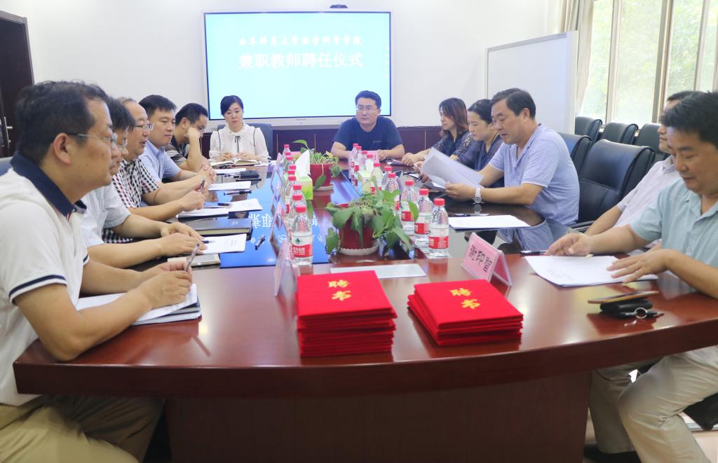 仪式上,数学科学学院院长孟凡伟简要介绍了学院的发展历程、学科建设和人才培养等情况。并宣读了数学教育兼职教师和兼职实习指导教师名单,聘请球探·体育,球探(中国)附属中学校长刘锦贤、副校长孟祥东等6位优秀中小学高级教师为数学教育兼职教师,28名优秀教师为学院师范生兼职实习指导老师。