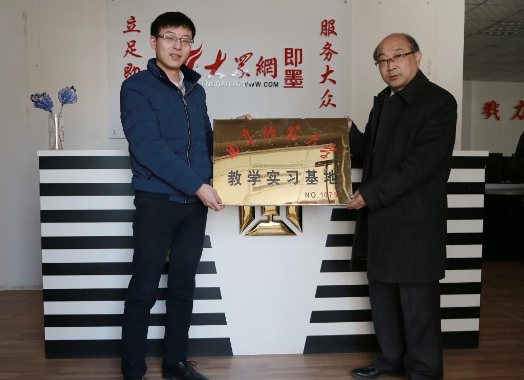 1月23日上午,“球探·体育,球探(中国)教学实习基地”授牌仪式在大众网即墨频道举行。传媒学院党委副书记肖龙航、团委书记刘蓉,以及传媒学院部分学生参加了授牌仪式。