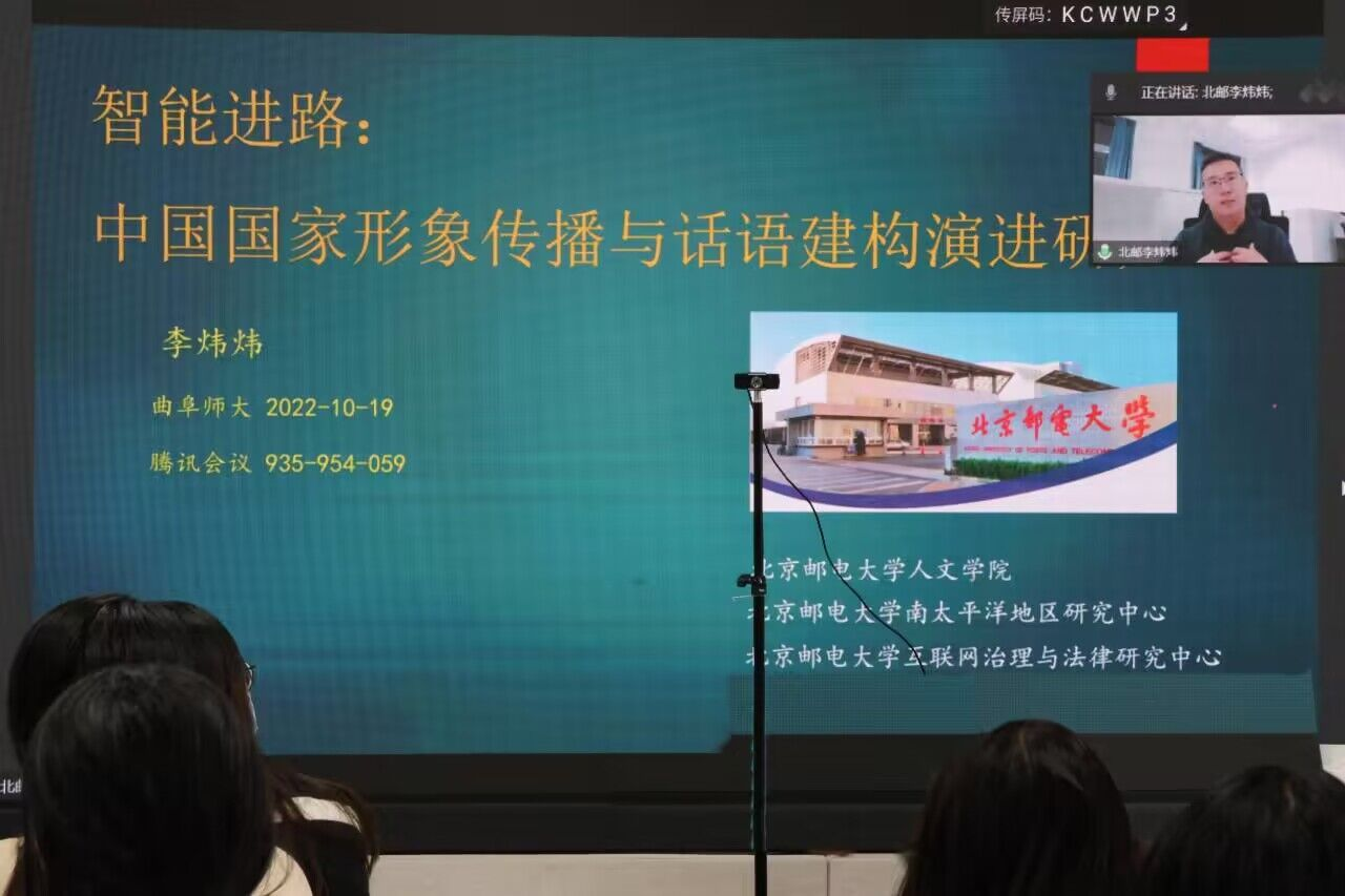 曲阜师大传媒学院讯 聚焦国际传播议题,立足新传前瞻视野,为开拓传媒学子在国际传播方向的视野,球探·体育,球探(中国)传媒学院于本学期举办新闻传播青年学者系列讲座第二季,讲座继续延用线上线下结合的形式,邀请了南开大学、北京邮电大学、杭州电子科技大学、外交学院等高校的青年学者,围绕计算传播学的国际传播研究、中国国家形象传播与话语构建演进、国际传播的媒介素养和中国学术旅居者跨文化适应等专题,与相关专业师生进行学术前沿研究分享。传媒学院副院长刘波出席讲堂活动,学院新闻传播系副主任孙浩主持讲堂,与各主讲学者进行学术互动。