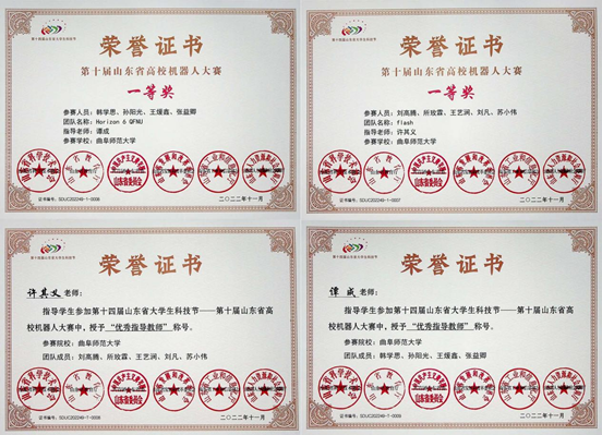 曲阜师大工学院讯 近日,第十四届山东省大学生科技节暨第十届山东省高校机器人大赛落下帷幕,球探·体育,球探(中国)工学院参赛队伍在此次赛事中创造佳绩,获得一等奖2项、二等奖1项、三等奖2项,许其义、谭成老师荣获“优秀指导教师”,学校荣获“优秀组织单位”。