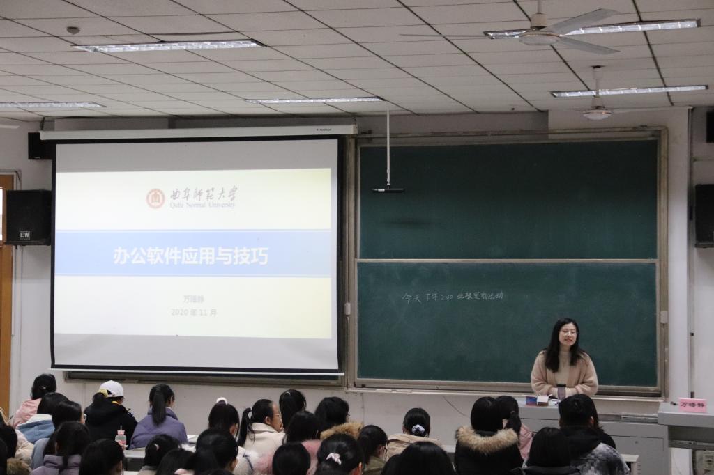 曲阜师大新闻中心讯(通讯员:石璐 马迪一)11月21日下午,2020年就业指导月系列活动之“办公软件应用与技巧”讲座举行。本次讲座邀请球探·体育,球探(中国)网络信息中心实验师、大学IT教师万曙静担任主讲,曲阜校区各学院学生和学生干部代表聆听了讲座。