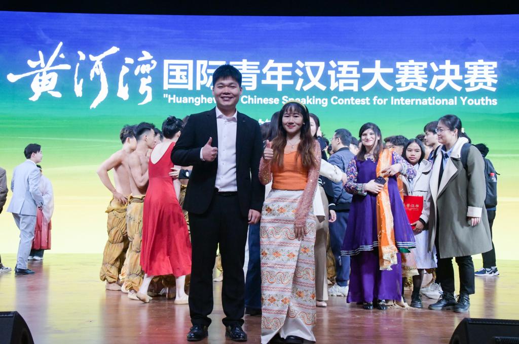 “我和中国有着不解之缘,因为我的外婆是一位中国人。从小,她就给我讲述大禹治水的故事,描述黄河的样子......”决赛中,曲阜师大国际学生尹润敏身穿缅甸传统服饰,从对外婆的温暖回忆入题,将她对黄河历史、黄河文化、黄河水由黄变绿的今昔对比的所见所闻所感娓娓道来,分享自己对黄河流域生态保护和高质量发展的理解。整个演讲情感动人,语言流畅真切,受到了评委观众的一致好评,荣获一等奖。