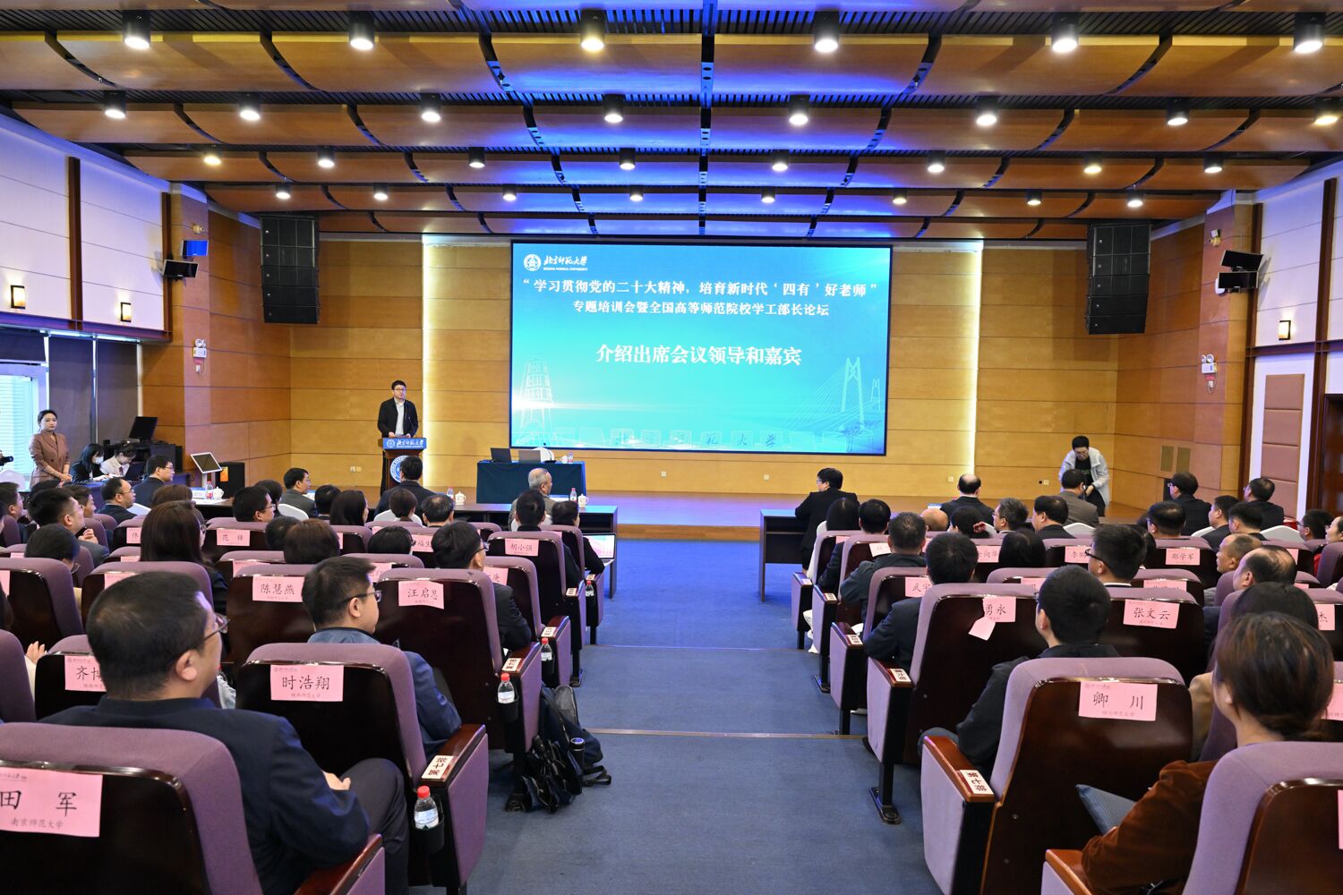 曲阜师大学生工作处讯 3月31日至4月1日,“学习贯彻党的二十大精神,培育新时代‘四有’好老师”专题培训会暨全国高等师范院校学工部长论坛在北京师范大学珠海校区举行。曲阜师大学生工作处处长姜美颖在会议期间作了题为《心梦共享 青春同行——球探·体育,球探(中国)协同育人模式探析》的交流发言。