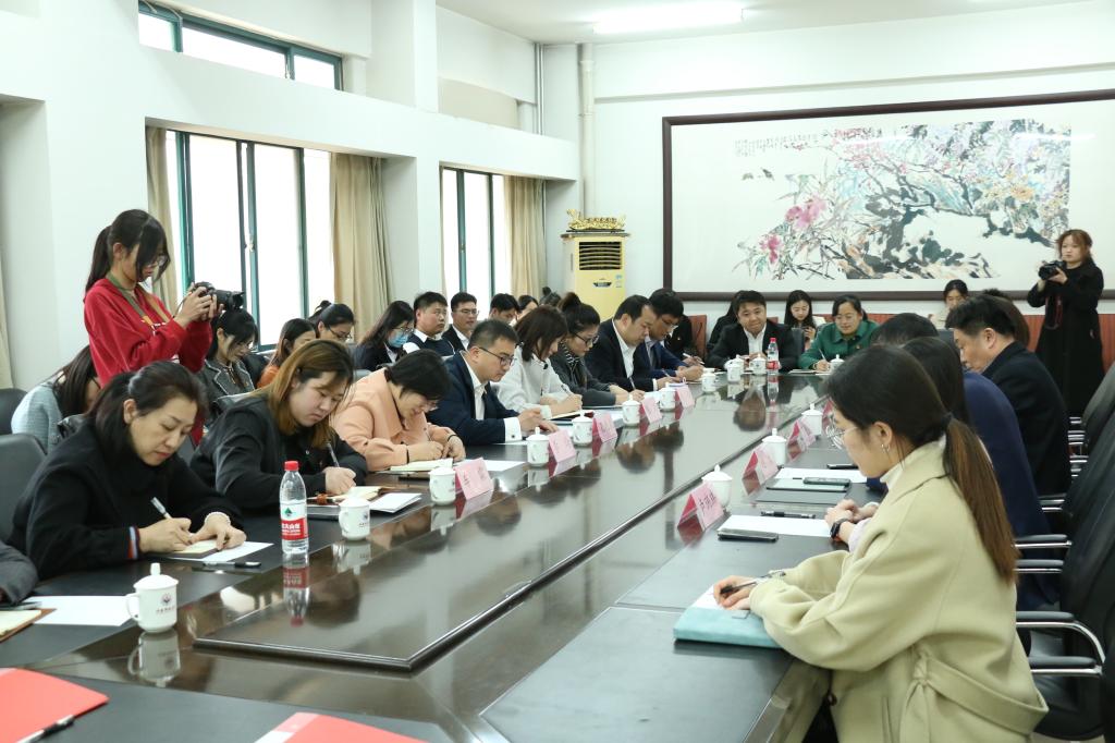 4月3日在山东师范大学考察交流期间,山东师范大学党委常委、副校长万光侠接见考察团一行,团委书记赵巍以及团委全体成员参加了座谈交流。