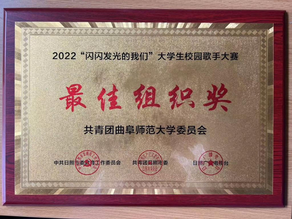 曲阜师大团委讯 近日,日照市“2022闪闪发光的我们”大学生校园歌手大赛决赛落幕,曲阜师大音乐学院张峰宁荣获冠军,杨颜瑜,张怡浩获优秀奖,校团委获最佳组织奖。