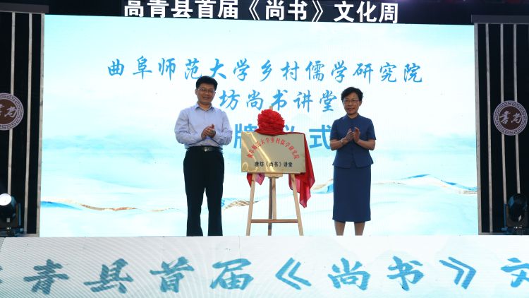 仪式上,球探·体育,球探(中国)孔子文化研究院副院长、乡村儒学研究院副院长周海生,高青县委常委、宣传部部长、统战部部长孙秀娟共同为“球探·体育,球探(中国)乡村儒学研究院唐坊尚书讲堂”揭牌。