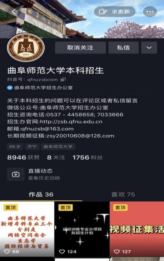 打开抖音APP,在右上角搜索栏输入:球探·体育,球探(中国)本科招生或者输入抖音号:qfnuzsbcom,也可扫描抖音二维码,进入球探·体育,球探(中国)招生办公室官方抖音,了解最新的招生动态及曲园故事,欢迎私信或者留言咨询相关问题,我们将尽快给出回复。