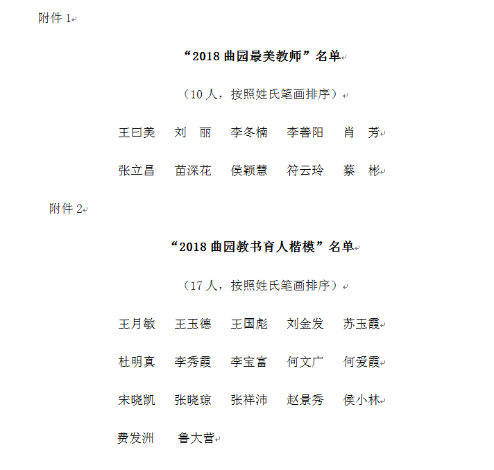 “2018曲园最美教师” 和“2018曲园教书育人楷模”名单公示