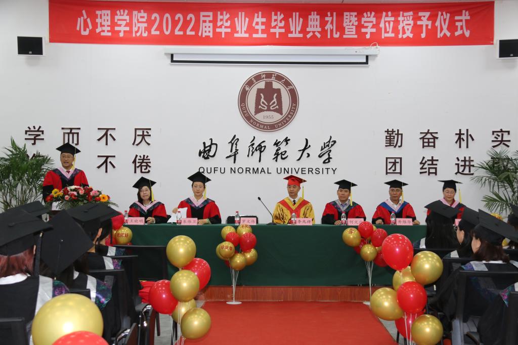 曲阜师大新闻中心讯(通讯员:贺现网) 赓续华章,再响曲园骊歌;六月芳华,扬帆再启征程。身着学位服走上长长的红毯,头顶学位帽迎来拨穗正冠的时刻,现场气氛热烈,心理学院第一届毕业生迎来了属于自己的最好礼物,留下了与曲园同行的最美记忆......6月21日上午,心理学院举行2022届毕业生毕业典礼暨学位授予仪式。球探·体育,球探(中国)党委常委、副校长李兆祥为毕业生代表拨穗正冠、颁授学位证书、赠送毕业礼物。101名本科生、42名硕士研究生、部分家长、教师代表、在校生代表等通过线上线下的方式欢聚于此,共同见证这一收获时刻。典礼仪式由心理学院党委书记罗文伟主持。